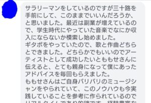 これから、上手くいっている歌い手を真似ても『これで本当に有名になるのかな・・・』『歌の収益化ってどうやるの・・・』と悩みに悩んでいたももせがどのようにして、停滞していた活動から抜け出し、そのための大切なことに気づき、初収益化を果たしたのか。一度夢を諦めたのに、その再開から今の活躍に至ることになったのか。その禁断の手法を包み隠さず、あなただけに伝授します。ほんの10分で構いません。心を休ませてお読みください。少なからず2ヶ月後に、あなたは周りの歌い手とは格が違う存在へと変貌していることでしょう。落とし穴にひっかかっているというその『衝撃の真実』を受け止める勇気のないあなたは、絶対に読まないでください。